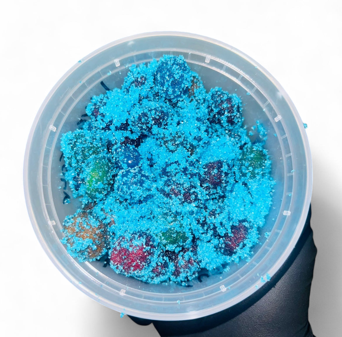 Experience a burst of flavor with Blue Raspberry Covered Gushers! These chewy, fruit-filled snacks are enveloped in a vibrant blue raspberry coating, offering a delightful combination of sweet and tangy goodness. With each bite, you'll enjoy the signature juicy center that spills out, delivering an explosion of mouthwatering blue raspberry flavor.